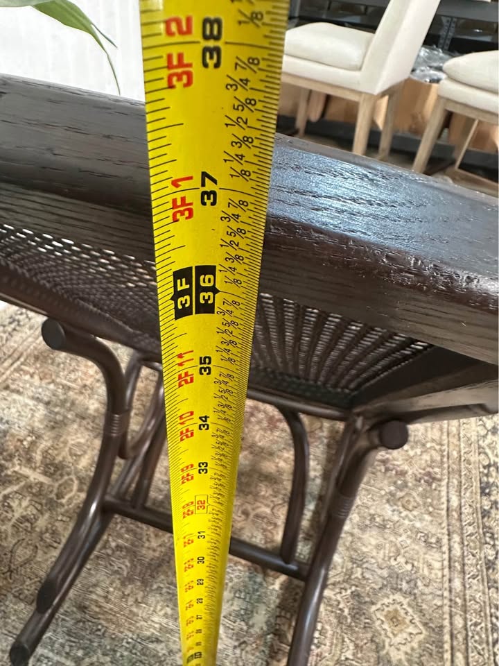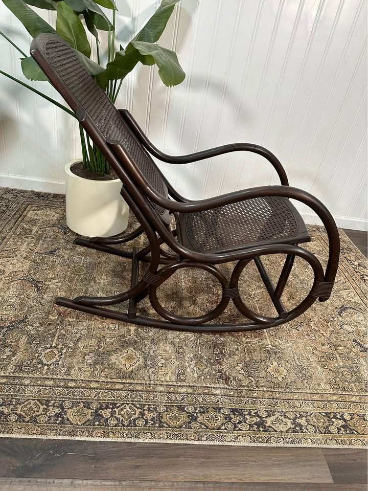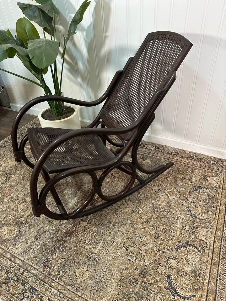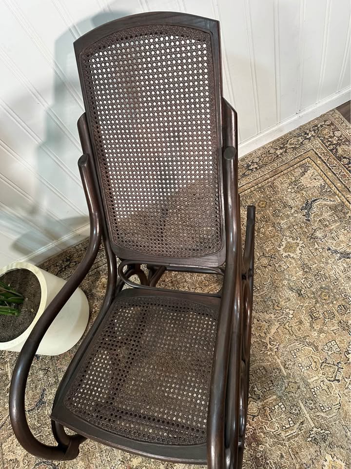 $85.00 Vintage Thonet Style Large Dark Stain Bamboo Bentwood Cane Rattan Rocking Arm Chair. Measurements: 18.5″ Deep, 19″ Wide, 37″ Tall This piece is in overall very nice condition. Delivery available for a fee of $25 within a 10-mile radius of Monroe, Ga. Additional mileage is an additional fee. A deposit is required to schedule delivery. 1 in stock Vintage Thonet Style Large Dark Stain Bamboo Bentwood Cane Rattan Rocking Arm Chair quantity Add to cart Categories: Antiques / Vintage Pieces, Rocking Chairs Description Reviews (0) Description Vintage Thonet Style Large Dark Stain Bamboo Bentwood Cane Rattan Rocking Arm Chair. Reviews There are no reviews yet. Only logged in customers who have purchased this product may leave a review. Related products Antiques / Vintage Pieces/Dining Room Furniture/Dining TablesAntique Rustic Country French Farm Table Primitive Mahogany Dining Table $350.00 Add to cart Antiques / Vintage PiecesVTG Wood Stool Bench Chair Time Out Child’s Chair Tall Back Primitive Rustic Cottage $55.00 Add to cart SaleRocking ChairsVTG Victorian Style Walnut With Cane Seat and Back Rocker Chairs Set of 2 $125.00 Original price was: $125.00.$95.00Current price is: $95.00. Add to cart