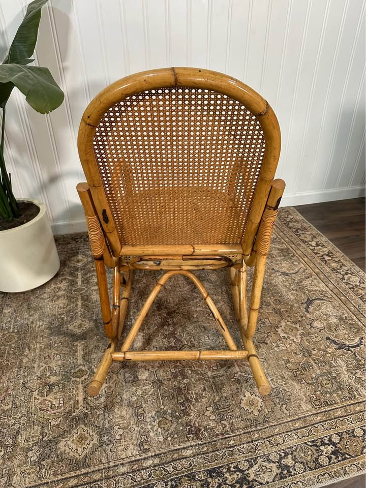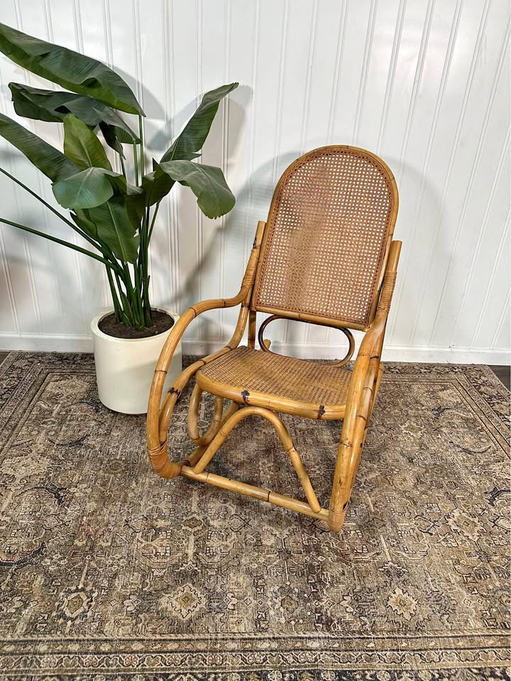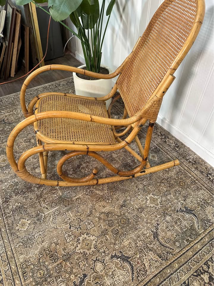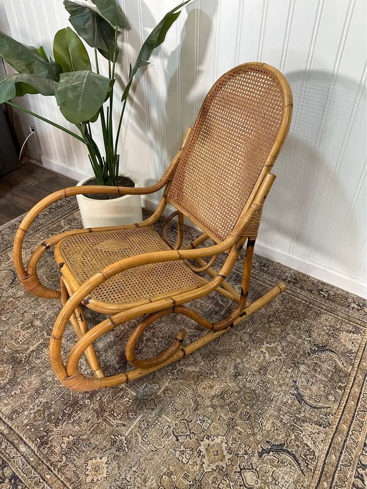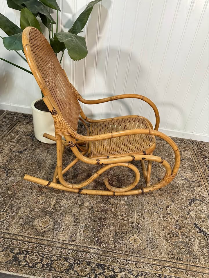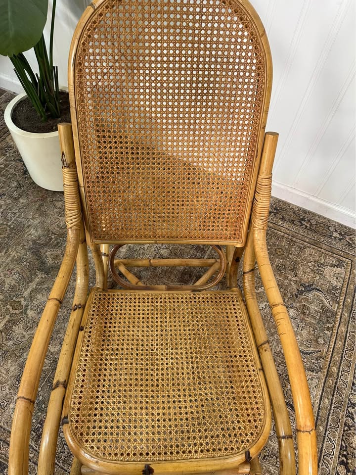 Vintage Thonet Style Large Tortoise Bamboo Bentwood Cane Rattan Rocking Arm Chair.