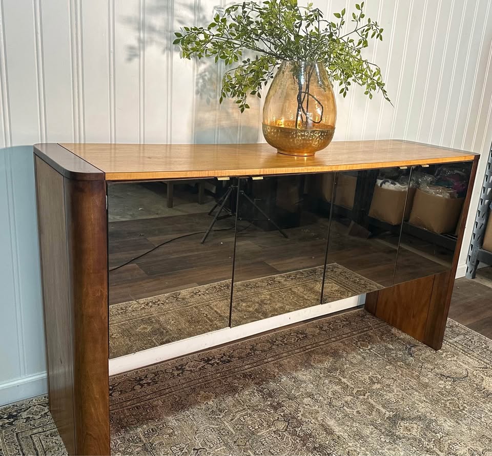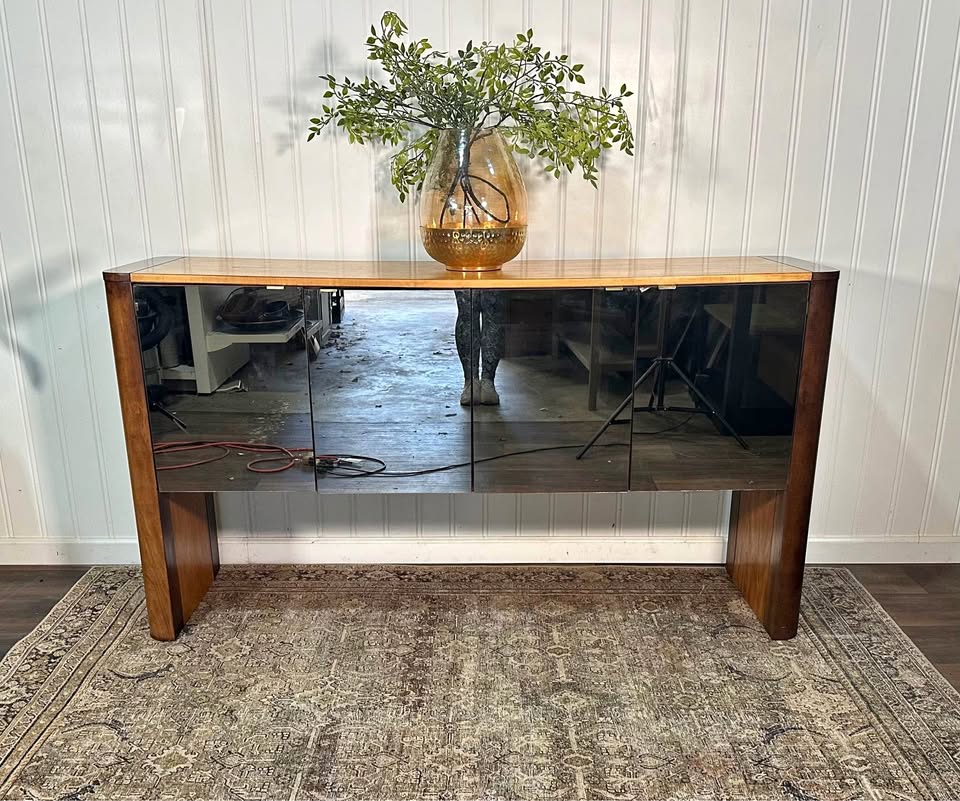 VTG Founders Console Credenza, FOUNDERS Buffet Mid Century Modern Two Tone Mirrored Post Modern.