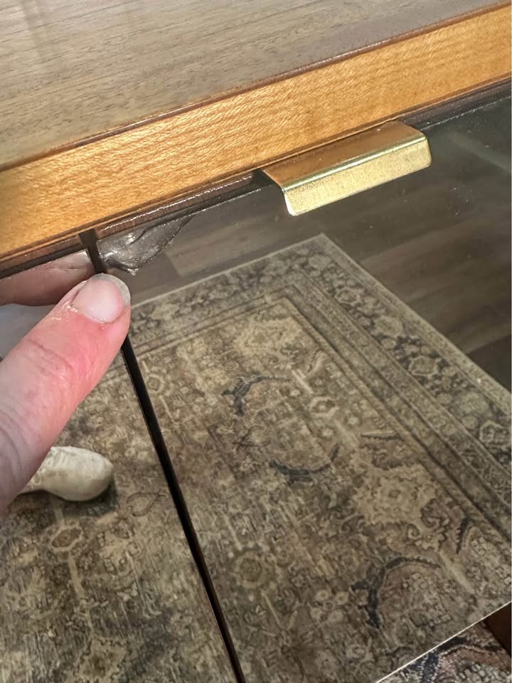 This piece is in overall very nice condition. It has one small surface scratch on top and a small crack on the mirror corner, as shown in the photos.